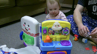 It's a kitchen! She still plays with it and loves it. She also got a baby doll, some clothes, and a pop-up toy from mom and dad.